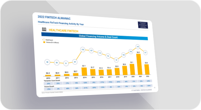 FT Partners 2022 FinTech Almanac Page 92 Page 942022 FINTECH ALMANAC Healthcare FinTech Financing Activity By Year HEALTHCARE FINTECH Global Financing Volume & Deal Count 180 160 140 120 100 80 60 40 20 - (20)