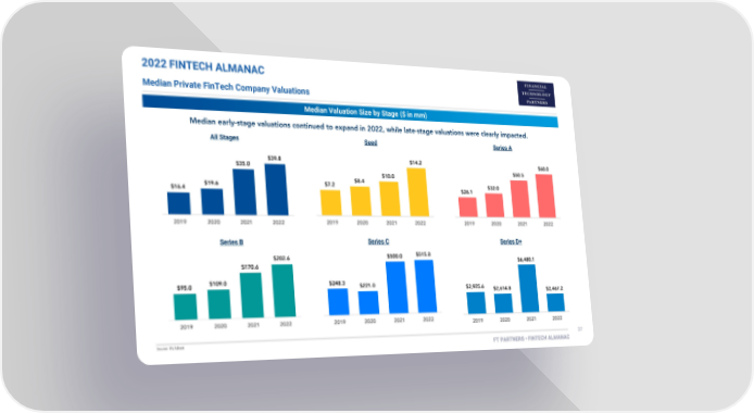 FT Partners 2022 FinTech Almanac Page 36 Page 382022 FINTECH ALMANAC Median Private FinTech Company Valuations Median Valuation Size by Stage ($ in mm) All Stages Seed Series A Series B Series C Series D+