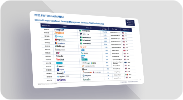 2022 FINTECH ALMANAC Selected Large / Significant Financial Management Solutions M&A Deals in 2022
