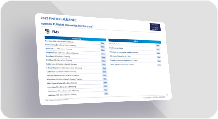 2022 FINTECH ALMANAC Appendix: Published Transaction Profiles (cont.) FMS Financing M&A