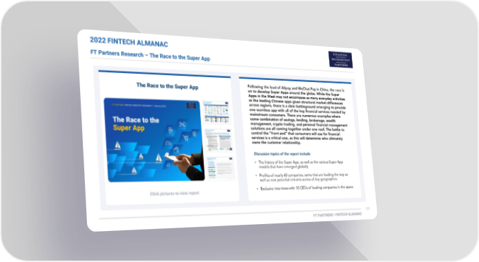 2022 FINTECH ALMANAC FT Partners Research – The Race to the Super App The Race to the Super App • • Click pictures to view report •
