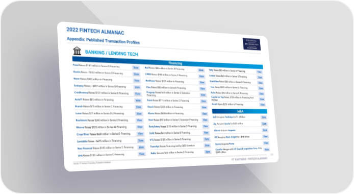 2022 FINTECH ALMANAC Appendix: Published Transaction Profiles BANKING / LENDING TECH Financing M&A