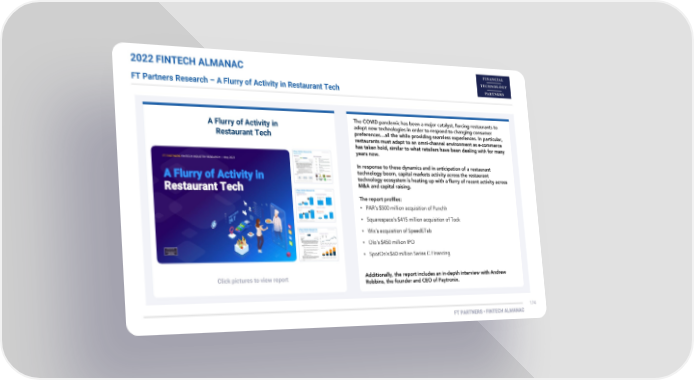 2022 FINTECH ALMANAC FT Partners Research – A Flurry of Activity in Restaurant Tech A Flurry of Activity in Restaurant Tech • • • • • Click pictures to view report