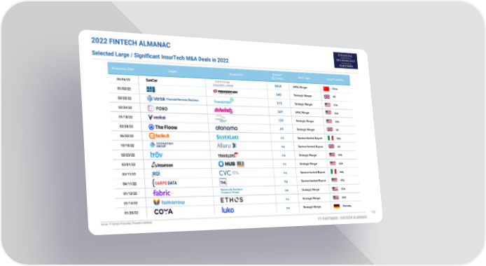 FT Partners 2022 FinTech Almanac Page 119 Page 1212022 FINTECH ALMANAC Selected Large / Significant InsurTech M&A Deals in 2022 SunCar Financial Services Business