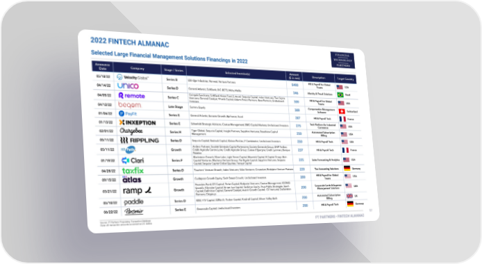 2022 FINTECH ALMANAC Selected Large Financial Management Solutions Financings in 2022