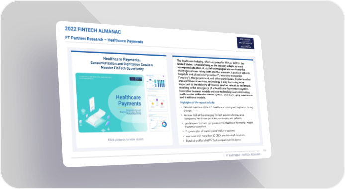 2022 FINTECH ALMANAC FT Partners Research – Healthcare Payments • • • • Click pictures to view report • •