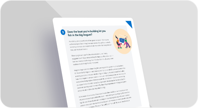 Does the boat you’re building let you ifsh in the big leagues? As a startup, your product exists within a greater ecosystem of companies and technologies. Customizing for a large customer, to a point, can actually connect your company to broader sales channels within that ecosystem over time, and help boost revenue. When trying to catch your ifrst few whale customers, use the early engagements with large companies to understand your blind spots—both in business model and technology. Even if the deal falls through, your product roadmap should be signiifcantly more robust. Imagine a large customer is demanding that you integrate into a platform such as Salesforce. On the one hand, integration could erode your company’s perceived value since customers stop accessing your product via your website and go in through a third party instead. On the other hand, this integration can open doors to more customers by leveraging the partner company’s sales and marketing engine and remove a potential sales objection by some customers (e.g., you appear to be endorsed, in a way, by a big established company like Salesforce.) Big-ifsh customers can help create momentum by demanding integrations with the larger ecosystem companies and enable a pivot in product strategy. As the leader of your startup, it’s up to you to decide how broadly you want to cast your sales net, and what your target catch-of-the day is. There’s nothing wrong with going atfer one or two big ifsh—and it’s usually advisable—as long as those resulting sales align with your company’s product vision, open new markets, broaden your customer base, or present you with a new sales channel. And remember: The sea is iflled with lots of mid-sized ifsh, too, who may be easy to catch—and just as satisfying to snare. “Remember that one company’s whale could be another company’s minnow. In other words, it’s important to think about how closely your product affects a targeted customer’s core business in evaluating how to approach the sales opportunity.” 15