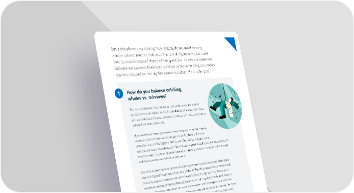 But is this always a good thing? How, exactly, do you avoid creating a super-tailored product that lands that critical big customer, but could limit its broader appeal? Here are three questions I believe every business sotfware-startup executive should consider before committing to a product roadmap focused on one big-ifsh customer, instead of a broader pool. How do you balance catching whales vs. minnows? First, you should remember that one company’s whale could be another company’s minnow. In other words, it’s important to think about how closely your product affects a targeted customer’s core business in evaluating how to approach the sales opportunity. If you are selling the next great piece of networking equipment, for instance, a company like Comcast—which runs giant cable-TV, phone and Internet networks—is one of the largest whales for you. There will be long sales cycles, complex and costly integrations, and high post-sales support in dealing with this key customer. On the other hand, if you’re trying to sell Comcast a marketing automation tool, this customer might look like any enterprise that sells to consumers. One of the key metrics to consider when targeting customers, and balancing your efforts going atfer both big and small buyers, is to create a sales pipeline of easily repeatable enterprise deals. One early-stage tech company with which I’ve worked recently highlights this. The company received considerable interest atfer using the same pitch with a global ifnancial institution and a mid-market consumer product company. The consumer-product company could articulate a ‘simple’ single problem statement and make a decision with the people in the room. The mega- bank, however, had concerns about support, dozens of potential (and ambiguous) use cases, and no single decision maker. Considering the number of roadblocks that could stall a sale at the bank, the portfolio company was wise to come up with an easily replicable sales process and limit the number of whales in its sale pipeline; it could pursue, probably successfully, many more mid-market deals with the same time and resources that would have gone into closing a deal at the bank. For most areas of emerging technology, there is a small set of whales that work well with startups. If most of your sales come from these large accounts, that may be a warning sign that your product is not accessible to the average enterprise. My advice is to spend a measured amount of time on these companies. Guide your sales team toward repeatable sales opportunities with metrics and compensation to ifll the sales funnel with mid-market accounts. 13