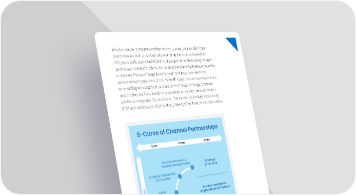 Whether you’re in the early innings of your startup journey, deifning a brand-new market, or strategically scaling up the S-curve towards an IPO, you should stay mindful of the critical points to developing the right partner and channel motions. As the diagram below indicates, companies in the early “ferment” stage beneift most from base-level technical partnerships/integrations. At the “takeoff” stage, companies should move to co-selling with technical partners. At the “maturity” stage, the team and product are likely ready for broader go-to-market partnerships with solutions-integration (SI) providers, information-technology outsourcing (ITO) and distributors (disti for short). We’ll deifne these terms more below. S-Curve of Channel Partnerships Start Grow Scale Multiple Personas or Products for Expansion Channel 2-Tier Disti Scalable Partnership & CS Motion Clear Solution Integrators Message/Story Implementation Partners Capabilities Direct Sales Tech Partnerships Marketplaces Initial MVP Time 26