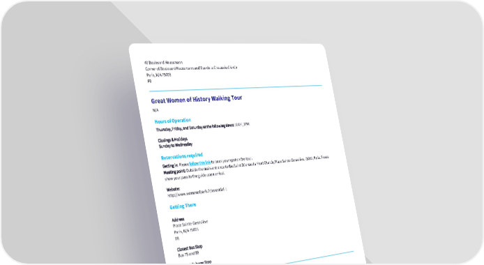 40 Boulevard Haussmann Corner of Boulevard Haussmann and Rue de la Chaussée d’Antin Paris, N/A 75009 FR Great Women of History Walking Tour N/A Hours of Operation Thursday, Friday, and Saturday at the following times: 10AM, 2PM Closings & Holidays Sunday to Wednesday Reservations required Getting in: Please follow this link to book your spot on the tour. Meeting point: Outside the main entrance to the Saint Etienne du Mont Church, Place Sainte-Geneviève, 75005, Paris. Please show your pass to the guide upon arrival. Website: http://www.womenofparis.fr/essential-1 Getting There Address Place Sainte-Geneviève Paris, N/A 75005 FR Closest Bus Stop Bus 75 and 89 Closest Subway Stop Cardinal Lemoine Grévin Paris - Wax Museum Getting in: please show your pass at the main entrance. Hours of Operation Daily: 10AM - 6PM School holidays: Monday - Friday: 9:30AM - 7PM The opening and closure times may change. For updated timings, please check the attraction website. Closings & Holidays N/A Getting There Address