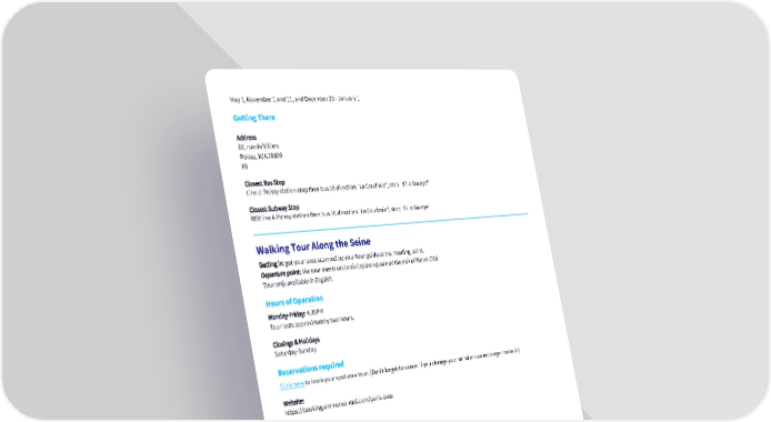 May 1, November 1 and 11, and December 25 - January 1 Getting There Address 82, rue de Villiers Poissy, N/A 78300 FR Closest Bus Stop Line J: Poissy station stop then bus 50 direction "La Coudraie", stop "Villa Savoye" Closest Subway Stop RER line A Poissy station then bus 50 direction "La Coudraie", stop "Villa Savoye" Walking Tour Along the Seine Getting in: get your pass scanned by your tour guide at the meeting point. Departure point: the tour meets on Louis Lepine square at the exit of Metro Cité. Tour only available in English. Hours of Operation Monday-Friday: 4.30PM Tour lasts approximately two hours. Closings & Holidays Saturday-Sunday Reservations required Click here to book your spot on a tour. (Don't forget to cancel if you change your mind or can no longer make it.) Website: https://booking.emmenez-moi.com/paris-pass Getting There Address Place Louis Lépine at the exit of Metro Cité Paris, N/A 75004 FR