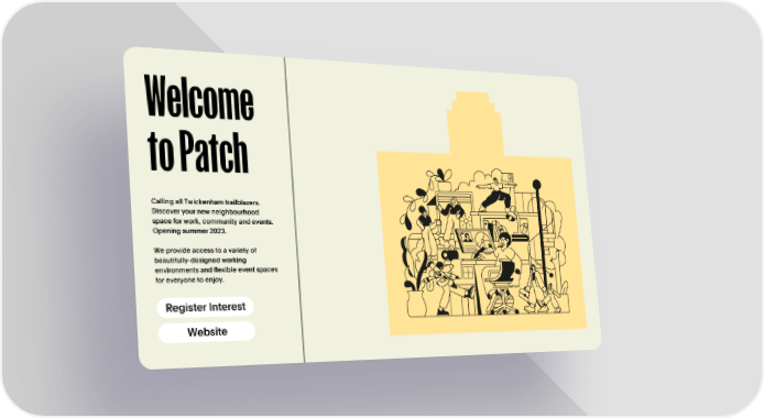 Welcome to Patch Calling all Twickenham trailblazers. Discover your new neighbourhood space for work, community and events. Opening summer 2023. We provide access to a variety of beautifully-designed working environments and flexible event spaces for everyone to enjoy. Register Interest Website