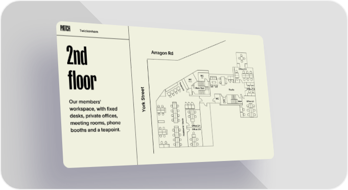 Twickenham Arragon Rd Office 2.3 2nd WC Men WC Women T e a p o Main Stair Office 2.2 i t n Studio t floor e e r t WC t f S i Stair Office 2.1 L Our members' k r o workspace, with fixed Y desks, private offices, y d u t meeting rooms, phone S ' s Office 2.4 t n booths and a teapoint. e Office 2.5 d i s e R