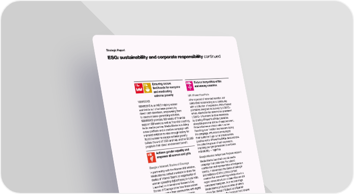 Strategic Report ESG: sustainability and corporate responsibility continued Ensuring secure Reduce inequalities within livelihoods for everyone and among countries and eradicating extreme poverty HP: #PowerYourPride 100WEEKS After a period of extended isolation, HP 100WEEKS is an NGO helping women celebrated reconnecting as a community worldwide out of extreme poverty by with a collection of expressive, Pride-themed direct cash donations, empowering them printables designed exclusively by LGBTQ+ to create income-generating activities. artists. Media.Monks selected six prominent 100WEEKS provides 100 weeks of financial LGBTQ+ influencers to drive awareness support (€8/week) as well as financial coaching. by sharing #PowerYourPride printables As its media partner, Media.Monks is building alongside personal stories of empowerment, a new platform and a creative campaign with Pride initiatives and bold calls to action. a shared ambition to raise enough money for Reaching over 1 million impressions during 10,000 women to escape extreme poverty the campaign, influencers encouraged before the end of 2023 and help another 50,000 their audience to go out and build a more people in their direct environment benefit. positive world. #PowerYourPride demonstrates the collective power of self-expression, Achieve gender equality and inspiring younger generations to embrace empower all women and girls individuality — together. Google Mexico: Indigenous Regions support Google x Internet: Stories of Courage Media.Monks launched a social media In partnership with the Women Will initiative, campaign that celebrates the cultural Media.Monks crafted a website to share the contribution and representation of indigenous stories of Internet Saathi: an organisation of identity. It showcased the stories of strength women spreading digital literacy in rural India. and resilience of Afro-Latinas content Launched on International Women’s Day, creators that are redefining racial justice in a Stories of Courage show how these women region where Afro-Latin communities are still are empowering their communities with digital considered foreigners. As a second stage, knowledge to access greater economic Media.Monks produced a series of videos opportunity. Using the women’s own words and where the mixing of Nahuatl and Spanish voices, the audiovisual site illustrates the ripple languages becomes the focal point and shapes effect of their stories as community leaders and the Mexican modern identity. entrepreneurs. We tag-teamed with Google on the concept, copy, design, and development of the site to amplify the women’s voices across the web. Media.Monks is building a new platform and a creative campaign with a shared ambition to raise enough money for 10,000 women to escape extreme poverty 22 S4Capital Annual Report and Accounts 2021