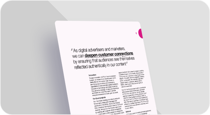 1 As digital advertisers and marketers, we can deepen customer connections by ensuring that audiences see themselves reflected authentically in our content Innovation supported 69 in 2021, have its origin in creating To spur innovation, 0.07% of our net revenue a positive impact on the world, where revenue is spent on research and development work. from products or services comes from positive Media.Monks’ innovation team works on impact. The client can be a corporate, making identifying opportunities and developing profit, or non-profit. For example: education capabilities to steer and drive global solutions related clients, culture/art related clients, focused on technology and design evolution. NGOs, clients promoting human rights or The gained knowledge, findings and learnings nature conservation. are shared on a monthly basis to enable Our 251 For Good projects with conventional everyone interested to build upon our work. and purpose-driven enterprises, represent For Good projects 4.21% of our net revenue. We are already Our ‘For Good’ strategy is a structured push seeing progress here, moving from 41 out of for concepts, ideas and messages that 7,800 For Good projects (0.5%) in 2020, to contribute to the SDGs. We do this through 251 out of 14,311 (1.8%) For Good projects in R&D, donating financial aid or time to For Good 2021. We have the ambition to increase these charities, through our For Good projects and efforts by contributing at least 1% of our total by working with purpose-driven enterprises revenue and hours worked to voluntary work (i.e. clients with a core purpose to change the for non-clients. world for the better) via paid, discounted or pro Outlook bono work. 2021 was a year of creating internal awareness. Donating to For Good charities In 2022, we will amplify our knowledge We contribute to charities, either directly externally and among clients by developing with our hours or indirectly with monetary more guidelines for sustainable work, like our donations. In 2021, Media.Monks donated Sustainable Film global rules of engagement, £87,090 (0.02% of our net revenue) in financial and transform them into default policies. aid. In addition, we also supported charities We will launch the People v Extinction with 1,460 hours of our work. campaign in 2022, to create awareness For Good Projects around biodiversity and the huge numbers of animals disappearing. For Good Projects are projects created with a Some other examples of For Good projects are purpose to deliver a specific positive impact shown on the following pages. and benefit society by contributing to one or a few of the SDGs. We do this with conventional clients where the specific project is focused on one or more SDGs or with purpose-driven enterprises. These clients, of which we S4Capital Annual Report and Accounts 2021 21