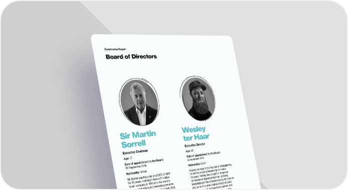 Governance Report Board of Directors Sir Martin Wesley Sorrell ter Haar Executive Chairman Executive Director Age: 77 Age: 43 Date of appointment to the Board: Date of appointment to the Board: 28 September 2018 4 December 2018 Nationality: British Nationality: Dutch Sir Martin was Founder and CEO of WPP Wesley ter Haar is the founder of MediaMonks. for 33 years, building it from a £1 million Under his ongoing leadership for nearly ‘shell’ company in 1985 into the world’s 20 years, Wesley has sought to wage war largest advertising and marketing services on mediocre digital production, growing company. When Sir Martin left in April 2018, MediaMonks from a humble production house WPP had a market capitalisation of over into an end-to-end creative and production £16 billion, revenues of over £15 billion, profits partner, through aggressive expansion and of approximately £2 billion and over 200,000 many combinations throughout the years. people in 113 countries. Prior to that, Sir Always looking to bring creative triumphs to Martin was Group Financial Director of Saatchi justice, Wesley is the inaugural president of & Saatchi plc for nine years and worked Cannes Lions’ Digital Craft jury and today for James Gulliver, Mark McCormack and serves on the Cannes Titanium Jury, which Glendinning Associates before that. celebrates game-changing creativity. In 2018, Sir Martin supports a number of leading ter Haar earned a coveted spot on the AdAge’s business schools and universities, including 2018 Creativity All-Stars list and was inducted his alma maters, Harvard Business School into the ADCN Hall of Fame in 2018. He is a and Cambridge University and a number of board member of SoDA (The Digital Society). charities, including his family foundation. 48 S4Capital Annual Report and Accounts 2021