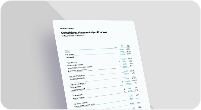 Financial statements Consolidated statement of profit or loss For the year ended 31 December 2021 2021 2020 Notes £000 £000 Revenue 6 686,601 342,687 Cost of sales 126,338 47,505 Gross profit 560,263 295,182 Personnel costs 7 412,537 205,135 Other operating expenses 7 49,829 30,561 Acquisition and set-up related expenses 7 83,496 14,338 Depreciation and amortisation 7 56,456 37,015 Total operating expenses 602,318 287,049 Operating (loss)/profit (42,055) 8,133 Adjusted operating profit 94,808 57,950 Adjusting items 26 (136,863) (49,817) Operating (loss)/profit (42,055) 8,133 Finance income 8 1,032 698 Finance expenses 8 (13,283) (5,735) Net finance expenses (12,251) (5,037) Loss on the net monetary position (1,344) – Loss/profit before income tax (55,650) 3,096 Income tax expense 9 (1,065) ( 7,025) Loss for the year (56,715) (3,929) Attributable to owners of the Company (56,715) (3,929) Attributable to non-controlling interests – – (56,715) (3,929) Loss per share is attributable to the ordinary equity holders of the Company Loss per share (pence) 10 (10.3) (0.8) Diluted loss per share (pence) 10 (10.3) (0.8) The accompanying notes on pages 113 to 160 form an integral part of the financial statements. 108 S4Capital Annual Report and Accounts 2021