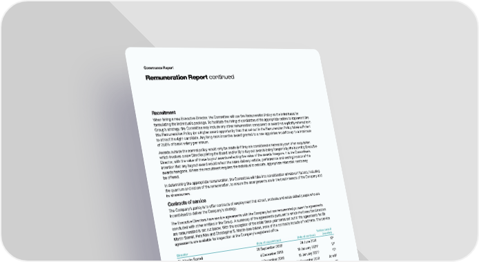 Governance Report Remuneration Report continued Recruitment When hiring a new Executive Director, the Committee will use the Remuneration Policy as the initial basis for formulating the individual’s package. To facilitate the hiring of candidates of the appropriate calibre to implement the Group’s strategy, the Committee may include any other remuneration component or award not explicitly referred to in this Remuneration Policy (or a higher award opportunity than that set out in the Remuneration Policy table) sufficient to attract the right candidate. Any long-term incentive award granted to a new appointee would be up to a maximum of 250% of basic salary per annum. Awards outside the normal policy would only be made (i) if they are considered a necessary part of an acquisition which involves a new Director joining the Board and/or (ii) to buy out awards being foregone by the incoming Executive Director, with the value of these buyout awards reflecting the value of the awards foregone. It is the Committee’s intention that any buyout award would reflect the same delivery vehicle, performance and vesting horizon of the awards foregone. Where the recruitment requires the individual to relocate, appropriate relocation costs may be offered. In determining the appropriate remuneration, the Committee will take into consideration all relevant factors, including the quantum and nature of the remuneration, to ensure the arrangements are in the best interests of the Company and its shareowners. Contracts of service The Company’s policy is to offer contracts of employment that attract, motivate and retain skilled people who are incentivised to deliver the Company’s strategy. The Executive Directors have service agreements with the Company but are remunerated pursuant to agreements concluded with other entities in the Group. A summary of the agreements pursuant to which the Executive Directors are remunerated is set out below. With the exception of the initial three-year terms set out in the agreements for Sir Martin Sorrell, Pete Kim and Christopher S. Martin (see below), none of the contracts include a fixed term. The service agreements are available for inspection at the Company’s registered office. Notice period Director Date of appointment Date of contract (months) 1 2 Sir Martin Sorrell 28 September 2018 24 June 2018 12 3 4 Victor Knaap 4 December 2018 18 January 2021 12 3 4 Wesley ter Haar 4 December 2018 18 January 2021 12 Pete Kim 24 December 2018 24 December 2018 At will2 Christopher S. Martin 24 December 2018 24 December 2018 At will2 Scott Spirit 18 July 2019 2 July 2019 12 5 Mary Basterfield 3 January 2022 14 November 2021 12 Notes: 4 1. Sir Martin has acted as a Director of S Limited since its foundation on 23 May 2018, which is the effective date of the start of his employment pursuant to his service agreement. 2. After a three-year initial term. 3. New contracts with Victor Knaap and Wesley ter Haar were signed on this date, superseding the contracts dated 9 July 2018. 4. Notice period from Company. Notice period from Executive Director is 6 months based on Dutch legal requirement that it is half of period required from Company. 5. Date of appointment as a Director. Joined the Company on 13 December 2021. Policy on payments for loss of office The service agreements for the Executive Directors allow for lawful termination of employment by making a payment in lieu of notice, by making phased payments over any remaining unexpired period of notice, or, in relation to contracts governed by Californian law, by paying 12 months’ base salary. There is no automatic or contractual right to annual bonus payments. At the discretion of the Committee, for certain leavers, a pro rata annual bonus may become payable at the normal payment date for the period of employment and based on full year performance. Should the Committee decide to make a payment in such circumstances, the rationale would be fully disclosed in the annual Remuneration Report. 76 S4Capital Annual Report and Accounts 2021