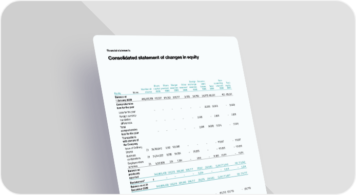 Financial statements Consolidated statement of changes in equity Foreign Accumu- Non- Share Share Merger Other exchange lated controlling Total 1 Number of capital premium reserves reserves reserves losses Total interests equity Equity Notes shares £000 £000 £000 £000 £000 £000 £000 £000 £000 Balance at 1 January 2020 469,227,259 117,307 174,302 205,717 (1,160) (18,750) (11,215) 466,201 100 466,301 Comprehensive loss for the year Loss for the year – – – – – – (3,929) (3,929) – (3,929) Foreign currency translation differences – – – – – 2,905 – 2,905 – 2,905 Total comprehensive loss for the year – – – – – 2,905 (3,929) (1,024) – (1,024) Transactions with owners of the Company Issue of Ordinary Shares 21 36,766,642 9,192 103,995 – – – – 113,187 – 113,187 Business combinations 21 34,744,022 8,686 84,564 – 28,655 – – 121,905 – 121,905 Employee share schemes 21 1,327,535 331 1,334 – (454) – 11,963 13,174 – 13,174 Balance as previously reported 542,065,458 135,516 364,195 205,717 27,041 (15,845) (3,181) 713,443 100 713,543 Restatement2 4 – – – – 2,234 – – 2,234 – 2,234 Balance as at 31 December 2020 542,065,458 135,516 364,195 205,717 29,275 (15,845) (3,181) 715,677 100 715,777 Comprehensive loss for the year Loss for the year – – – – – – (56,715) (56,715) – (56,715) Foreign currency translation differences – – – – – (6,358) – (6,358) – (6,358) Hyperinflation revaluation – – – – 1,633 – – 1,633 – 1,633 Total comprehensive loss for the year – – – 1,633 (6,358) (56,715) (61,440) – (61,440) Transactions with owners of the Company Issue of Ordinary Shares – – – – – – – – – – Business combinations 21 13,242,114 3,311 82,715 – 45,856 – – 131,882 – 131,882 Employee share schemes 22 – – – – (110) – 15,129 15,019 – 15,019 Balance as at 31 December 2021 555,307,572 138,827 446,910 205,717 76,654 (22,203) (44,767) 801,138 100 801,238 Notes: 1. Other reserves include the deferred equity consideration of £77.0 million, made up of the following: Decoded for £47.9 million, Raccoon for £16.8 million, 4 Cashmere for £6.9 million and Zemoga £5.4 million (2020: £28.9 million), the treasury shares issued in the name of S Capital Group to an employee benefit trust for the amount of £2.5 million (2020: £ 3.8 million), and hyperinflation impact in Argentina of £1.6m (2020: nil). 2. Restated deferred equity consideration for the business combination of Decoded as required by IFRS 3. Details are disclosed in Note 4. The accompanying notes on pages 113 to 160 form an integral part of the financial statements. 112 S4Capital Annual Report and Accounts 2021