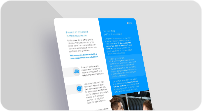 Tell the story behind the numbers Using mobile data capture to scan your customers’ tires will not only provide a huge ‘wow factor’. It also enables you to read ‘the story’ of their tires in real time - the age, size and specs - and give the customer an informed picture of what service they need. Here’s a quick example: With tire scanning technology on their mobile device, a technician could inform the customer that while their tires still have some tread, their age means that they are losing elasticity and delivering a poor performance - thus making the case for a replacement. The ability to present tire information in an accessible way helps build trust with the customer , and shows that the advice they receive is informed by the data, rather than a sales technique. 13 Provide an enhanced in-store experience Unlike some stores with a specific clientele, the customers of any tire dealer come from every walk of life - from auto aficionados to high-school grads and even grandmas. This means tire stores deal with a wide range of customer education. Some will perform most maintenance themselves, know what they need, and tell you their exact tire specs. Less savvy customers may know very little at all about their own vehicle, coming in for more regular maintenance like tire rotation or air pressure checks - and will rely on your team to help them make the right purchase. Whatever their experience level, each customer knows they are making a high- value purchase that will impact the safety, comfort and performance of their vehicle. As a result, the most valuable interactions your staff can have are those which build customer trust.