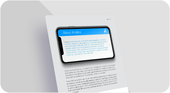 19 About Anyline Anyline makes data capture simple. By easily integrating our SDK into an app or website, our data capture solutions enable users to instantly scan and digitize analog data in the real world using any camera- enabled mobile device. It’s simple to use: technicians point their device’s camera at the data they want to capture. Using state-of-the-art mobile OCR technology, Anyline processes the characters in real-time, delivering instant and accurate digital data. Clients use Anyline to scan and digitize dozens of data points: from IDs and passports to barcodes and utility meters, and even license plates, tire numbers and more. Not only does Anyline deliver industry-leading performance and accuracy, it works offline, ensuring the greatest convenience and security for any use case. Since 2013, we’ve been working with some of the greatest minds in machine learning to create our market-leading data capture solutions. Our technology is already used by household names, including Discount Tire, Continental, PepsiCo, E.On and Canon, as well as national governments, and the United Nations. From our bases in Vienna Austria and Boston MA, our growing and dynamic team is ready to help you digitize your processes. References Imprint 1 Sickels, D. (2021) ‘How Top Tire Dealers Manage Their Inventory.’ Tire Review Magazine. 30th November. [Online] [Accessed on 7th February 2022] https://www.tirereview.com/manage-tire-inventory/. 2 U.S. Department of Transportation National Highway Traffic Safety Administration (2019) ‘REPORT TO CONGRESS: Electronic Tire Identification Study,’ [Online] [Accessed on 7th February 2022] http://www.safetyresearch.net/Library/18-3053%20Elec%20tire%20id%20study-3.pdf 3 Donehue, J. (2017) ‘Staying on Top of Tire Registration FAST Act Update and Where We’re Headed.’ Tire Review Magazine. 1st September. [Online] [Accessed on 7th February 2022] https://www.tirereview.com/staying-top-tire-registration-fast-act-update-headed/. Copyright & published by: Anyline Inc. 31 St. James Ave 6th Fl, Boston, MA 02116, United States [email protected] Version 1.0 February, 2022 www.anyline.com