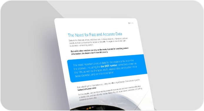 The Need for Fast and Accurate Data Data is the lifeblood of any retail business. It allows stores to understand customer needs, to track product performance and to offer the right services to the right customers - when they want it. But while other retailers can rely on the trusty barcode for providing product information, tire dealers don’t have this luxury. The most important product data for tire dealers is found on the tire sidewall, including the tire DOT number , sometimes known as the TIN, as well as the type, width, aspect ratio, construction rim or bead diameter, and service description. 4 But collecting this information accurately and efficiently is tedious, time-consuming and a hotbed of human error. In this chapter, we identify three key areas of tire sales and service where tire data plays a pivotal role, and explain why manual data entry and paper-based processes are costing dealerships every day.