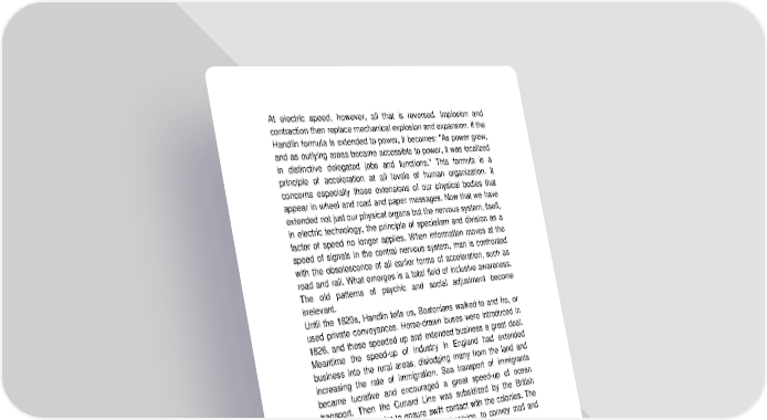 At electric speed, however, all that is reversed. Implosion and contraction then replace mechanical explosion and expansion. If the Handlin formula is extended to power, it becomes: "As power grew, and as outlying areas became accessible to power, it was localized in distinctive delegated jobs and functions." This formula is a principle of acceleration at all levels of human organization. It concerns especially those extensions of our physical bodies that appear in wheel and road and paper messages. Now that we have extended not just our physical organs but the nervous system, itself, in electric technology, the principle of specialism and division as a factor of speed no longer applies. When information moves at the speed of signals in the central nervous system, man is confronted with the obsolescence of all earlier forms of acceleration, such as road and rail. What emerges is a total field of inclusive awareness. The old patterns of psychic and social adjustment become irrelevant. Until the 1820s, Handlin tells us, Bostonians walked to and fro, or used private conveyances. Horse-drawn buses were introduced in 1826, and these speeded up and extended business a great deal. Meantime the speed-up of industry in England had extended business into the rural areas, dislodging many from the land and increasing the rate of immigration. Sea transport of immigrants became lucrative and encouraged a great speed-up of ocean transport. Then the Cunard Line was subsidized by the British government in order to ensure swift contact with the colonies. The railways soon linked into this Cunard service, to convey mail and immigrants inland. Although America developed a massive service of inland canals and river steamboats, they were not geared to the speeding wheels of the new industrial production. The railroad was needed to cope with mechanized production, as much as to span the great distances of the continent. The steam railroad as an accelerator proved to be one of the most revolutionary of all extensions of our physical bodies, creating a new political