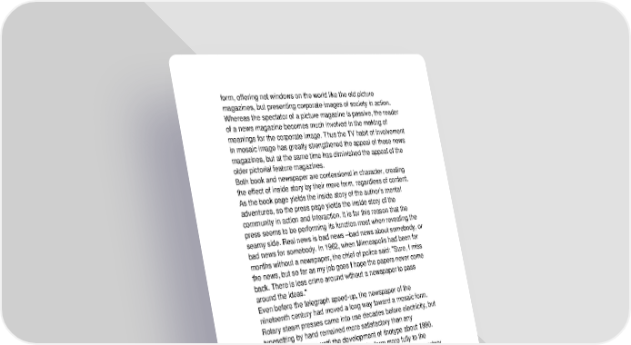 form, offering not windows on the world like the old picture magazines, but presenting corporate images of society in action. Whereas the spectator of a picture magazine is passive, the reader of a news magazine becomes much involved in the making of meanings for the corporate image. Thus the TV habit of involvement in mosaic image has greatly strengthened the appeal of these news magazines, but at the same time has diminished the appeal of the older pictorial feature magazines. Both book and newspaper are confessional in character, creating the effect of inside story by their mere form, regardless of content. As the book page yields the inside story of the author's mental adventures, so the press page yields the inside story of the community in action and interaction. It is for this reason that the press seems to be performing its function most when revealing the seamy side. Real news is bad news --bad news about somebody, or bad news for somebody. In 1962, when Minneapolis had been for months without a newspaper, the chief of police said: "Sure, I miss the news, but so far as my job goes I hope the papers never come back. There is less crime around without a newspaper to pass around the ideas." Even before the telegraph speed-up, the newspaper of the nineteenth century had moved a long way toward a mosaic form. Rotary steam presses came into use decades before electricity, but typesetting by hand remained more satisfactory than any mechanical means until the development of linotype about 1890. With linotype, the press could adjust its form more fully to the news-gathering of the telegraph and the news-printing of the rotary presses. It is typical and significant that the linotype answer to the long-standing slowness of typesetting did not come from those directly engaged with the problem. Fortunes had been vainly spent on typesetting machines before James Clephane, seeking a fast way of writing out and duplicating shorthand notes, found a way to combine the typewriter and the typesetter. It was the typewriter that solved the utterly differentKRE5S