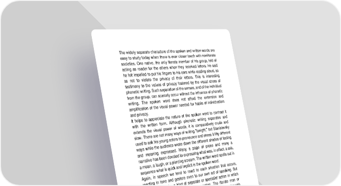 The widely separate characters of the spoken and written words are easy to study today when there is ever closer touch with nonliterate societies. One native, the only literate member of his group, told of acting as reader for the others when they received letters. He said he felt impelled to put his fingers to his ears while reading aloud, so as not to violate the privacy of their letters. This is interesting testimony to the values of privacy fostered by the visual stress of phonetic writing. Such separation of the senses, and of the individual from the group, can scarcely occur without the influence of phonetic writing. The spoken word does not afford the extension and amplification of the visual power needed for habits of individualism and privacy. It helps to appreciate the nature of the spoken word to contrast it with the written form. Although phonetic writing separates and extends the visual power of words, it is comparatively crude and slow. There are not many ways of writing "tonight," but Stanislavsky used to ask his young actors to pronounce and stress it fifty different ways while the audience wrote down the different shades of feeling and meaning expressed. Many a page of prose and many a narrative has been devoted to expressing what was, in effect, a sob, a moan, a laugh, or a piercing scream. The written word spells out in sequence what is quick and implicit in the spoken word. Again, in speech we tend to react to each situation that occurs, reacting in tone and gesture even to our own act of speaking. But writing tends to be a kind of separate or specialist action in which there is little opportunity or call for reaction. The literate man or society develops the tremendous power of acting in any matter with considerable detachment from the feelings or emotional involvement that a nonliterate man or society would experience. Henri Bergson, the French philosopher, lived and wrote in a tradition of thought in which it was and is considered that language is a human technology that has impaired and diminished