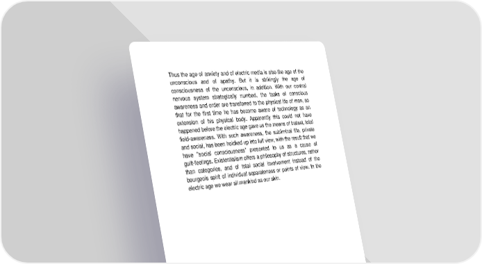 Thus the age of anxiety and of electric media is also the age of the unconscious and of apathy. But it is strikingly the age of consciousness of the unconscious, in addition. With our central nervous system strategically numbed, the tasks of conscious awareness and order are transferred to the physical life of man, so that for the first time he has become aware of technology as an extension of his physical body. Apparently this could not have happened before the electric age gave us the means of instant, total field-awareness. With such awareness, the subliminal life, private and social, has been hoicked up into full view, with the result that we have "social consciousness" presented to us as a cause of guilt-feelings. Existentialism offers a philosophy of structures, rather than categories, and of total social involvement instead of the bourgeois spirit of individual separateness or points of view. In the electric age we wear all mankind as our skin.