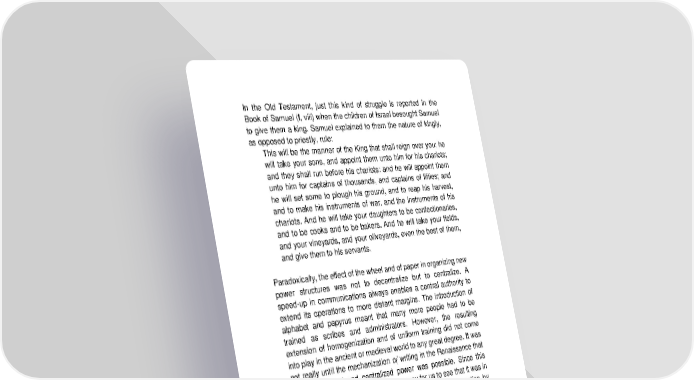 In the Old Testament, just this kind of struggle is reported in the Book of Samuel (I, viii) when the children of Israel besought Samuel to give them a king. Samuel explained to them the nature of kingly, as opposed to priestly, rule: This will be the manner of the King that shall reign over you: he will take your sons, and appoint them unto him for his chariots; and they shall run before his chariots: and he will appoint them unto him for captains of thousands, and captains of fifties; and he will set some to plough his ground, and to reap his harvest, and to make his instruments of war, and the instruments of his chariots. And he will take your daughters to be confectionaries, and to be cooks and to be bakers. And he will take your fields, and your vineyards, and your oliveyards, even the best of them, and give them to his servants. Paradoxically, the effect of the wheel and of paper in organizing new power structures was not to decentralize but to centralize. A speed-up in communications always enables a central authority to extend its operations to more distant margins. The introduction of alphabet and papyrus meant that many more people had to be trained as scribes and administrators. However, the resulting extension of homogenization and of uniform training did not come into play in the ancient or medieval world to any great degree. It was not really until the mechanization o( writing in the Renaissance that intensely unified and centralized power was possible. Since this process is still occurring, it should be easy for us to see that it was in the armies of Egypt and Rome that a kind of democratization by uniform technological education occurred. Careers were then open to talents for those with literate training. In the chapter on the written word we saw how phonetic writing translated tribal man into a visual world and invited him to undertake the visual organization of space. The