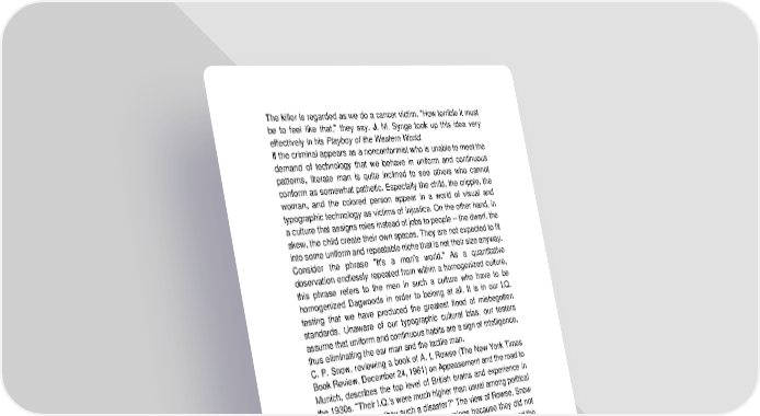 The killer is regarded as we do a cancer victim. "How terrible it must be to feel like that," they say. J. M. Synge took up this idea very effectively in his Playboy of the Western World. If the criminal appears as a nonconformist who is unable to meet the demand of technology that we behave in uniform and continuous patterns, literate man is quite inclined to see others who cannot conform as somewhat pathetic. Especially the child, the cripple, the woman, and the colored person appear in a world of visual and typographic technology as victims of injustice. On the other hand, in a culture that assigns roles instead of jobs to people -- the dwarf, the skew, the child create their own spaces. They are not expected to fit into some uniform and repeatable niche that is not their size anyway. Consider the phrase "It's a man's world." As a quantitative observation endlessly repeated from within a homogenized culture, this phrase refers to the men in such a culture who have to be homogenized Dagwoods in order to belong at all. It is in our I.Q. testing that we have produced the greatest flood of misbegotten standards. Unaware of our typographic cultural bias, our testers assume that uniform and continuous habits are a sign of intelligence, thus eliminating the ear man and the tactile man. C. P. Snow, reviewing a book of A. L Rowse (The New York Times Book Review, December 24, 1961) on Appeasement and the road to Munich, describes the top level of British brains and experience in the 1930s. "Their I.Q.'s were much higher than usual among political bosses. Why were they such a disaster?" The view of Rowse, Snow approves: "They would not listen to warnings because they did not wish to hear." Being anti-Red made it impossible for them to read the message of Hitler. But their failure was as nothing compared to our present one The American stake in literacy as a technology or uniformity applied to every level of education, government, industry, and social life is totally threatened by the electric technology. The threat of Stalin Hitler was external. The electric technology is within the