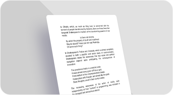 In Othello, which, as much as King Lear, is concerned with the torment of people transformed by illusions, there are these lines that bespeak Shakespeare's intuition of the transforming powers of new media: Is there not charms By which the property of youth and maidhood May be abus'd? Have you not read Roderigo, Of some such thing? In Shakespeare's Troilus and Cressida, which is almost completely devoted to both a psychic and social study of communication, Shakespeare states his awareness that true social and political navigation depend upon anticipating the consequences of innovation: The providence that's in a watchful state Knows almost every grain of Plutus' gold, Finds bottom in the uncomprehensive deeps, Keeps place with thought, and almost like the gods Does thoughts unveil in their dumb cradles. The increasing awareness of the action of media, quite independently of their "content" or programming, was indicated in the annoyed and anonymous stanza: In modern thought, (if not in fact) Nothing is that doesn't act, So that is reckoned wisdom which Describes the scratch but not the itch. The same kind of total, configuration awareness that reveals why the medium is socially the message has occurred in the most recent and rad,cal medial theories. In his Stress of Life, Hans
