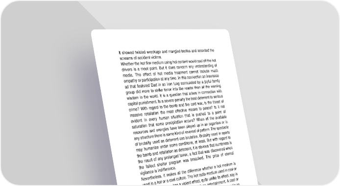 It showed twisted wreckage and mangled bodies and recorded the screams of accident victims. Whether the hot film medium using hot content would cool off the hot drivers is a moot point. But it does concern any understanding of media. The effect of hot media treatment cannot include much empathy or participation at any time. In this connection an insurance ad that featured Dad in an iron lung surrounded by a joyful family group did more to strike terror into the reader than all the warning wisdom in the world. It is a question that arises in connection with capital punishment. Is a severe penalty the best deterrent to serious crime? With regard to the bomb and the cold war, is the threat of massive retaliation the most effective means to peace? Is it not evident in every human situation that is pushed to a point of saturation that some precipitation occurs? When all the available resources and energies have been played up in an organism or in any structure there is some kind of reversal of pattern. The spectacle of brutality used as deterrent can brutalize. Brutality used in sports may humanize under some conditions, at least. But with regard to the bomb and retaliation as deterrent, it is obvious that numbness is the result of any prolonged terror, a fact that was discovered when the fallout shelter program was broached. The price of eternal vigilance is indifference. Nevertheless, it makes all the difference whether a hot medium is used in a hot or a cool culture. The hot radio medium used in cool or nonliterate cultures has a violent effect, quite unlike its effect, say in England or America, where radio is felt as entertainment. A cool or low literacy culture cannot accept hot media like movies or radio as entertainment. They are, at least, as radically upsetting for them as the cool TV medium has proved to be for our high literacy world. And as for the cool war and the hot bomb scare, the cultural strategy that is desperately needed is humor and play. It is play