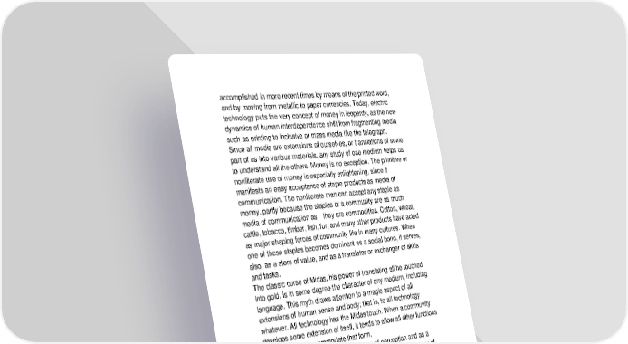 accomplished in more recent times by means of the printed word, and by moving from metallic to paper currencies. Today, electric technology puts the very concept of money in jeopardy, as the new dynamics of human interdependence shift from fragmenting media such as printing to inclusive or mass media like the telegraph. Since all media are extensions of ourselves, or translations of some part of us into various materials, any study of one medium helps us to understand all the others. Money is no exception. The primitive or nonliterate use of money is especially enlightening, since it manifests an easy acceptance of staple products as media of communication. The nonliterate man can accept any staple as money, partly because the staples of a community are as much media of communication as they are commodities. Cotton, wheat, cattle, tobacco, timber, fish, fur, and many other products have acted as major shaping forces of community life in many cultures. When one of these staples becomes dominant as a social bond, it serves, also, as a store of value, and as a translator or exchanger of skills and tasks. The classic curse of Midas, his power of translating all he touched into gold, is in some degree the character of any medium, including language. This myth draws attention to a magic aspect of all extensions of human sense and body; that is, to all technology whatever. All technology has the Midas touch. When a community develops some extension of itself, it tends to allow all other functions to be altered to accommodate that form. Language, like currency, acts as a store of perception and as a transmitter of the perceptions and experience of one person or of one generation to another. As both a translator and storehouse of experience, language is, in addition, a reducer and a distorter of experience. The very great advantage of accelerating the learning process, and of making possible the transmission of knowledge and insight across time and space, easily overrides
