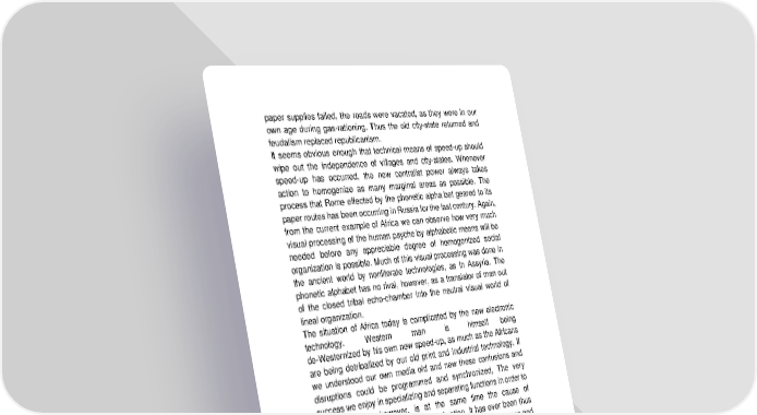 paper supplies failed, the roads were vacated, as they were in our own age during gas-rationing. Thus the old city-state returned and feudalism replaced republicanism. It seems obvious enough that technical means of speed-up should wipe out the independence of villages and city-states. Whenever speed-up has occurred, the new centralist power always takes action to homogenize as many marginal areas as possible. The process that Rome effected by the phonetic alpha bet geared to its paper routes has been occurring in Russia for the last century. Again, from the current example of Africa we can observe how very much visual processing of the human psyche by alphabetic means will be needed before any appreciable degree of homogenized social organization is possible. Much of this visual processing was done in the ancient world by nonliterate technologies, as in Assyria. The phonetic alphabet has no rival, however, as a translator of man out of the closed tribal echo-chamber into the neutral visual world of lineal organization. The situation of Africa today is complicated by the new electronic technology. Western man is himself being de-Westernized by his own new speed-up, as much as the Africans are being detribalized by our old print and industrial technology. If we understood our own media old and new these confusions and disruptions could be programmed and synchronized, The very success we enjoy in specializing and separating functions in order to have speed-up, however, is at the same time the cause of inattention and unawareness of the situation. It has ever been thus in the Western world at least. Self-consciousness of the causes and limits of one's own culture seem to threaten the ego structure and is, therefore, avoided. Nietzsche said understanding stops action, and men of action seem to have an intuition of the fact in their shunning the dangers of comprehension. The point of the matter of speed-up by wheel, road, and paper is the extension of power in an ever more homogeneous and