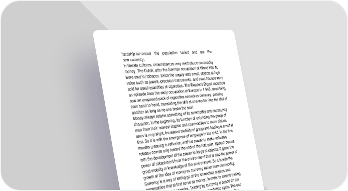 hardship increased the population boiled and ate the new currency. In literate cultures, circumstances may reintroduce commodity money. The Dutch, after the German occupation of World War II, were avid for tobacco. Since the supply was small, objects of high value such as jewels, precision instruments, and even houses were sold for small quantities of cigarettes. The Reader's Digest recorded an episode from the early occupation of Europe in 1 945, describing how an unopened pack of cigarettes served as currency, passing from hand to hand, translating the skill of one worker into the skill of another as long as no one broke the seal. Money always retains something of its commodity and community character. In the beginning, its function of extending the grasp of men from their nearest staples and commodities to more distant ones is very slight. Increased mobility of grasp and trading is small at first. So it is with the emergence of language in the child. In the first months grasping is reflexive, and the power to make voluntary release comes only toward the end of the first year. Speech comes with the development of the power to let go of objects. It gives the power of detachment from the environment that is also the power of great mobility in knowledge of the environment. So it is with the growth of the idea of money as currency rather than commodity. Currency is a way of letting go of the immediate staples and commodities that at first serve as money, in order to extend trading to the whole social complex. Trading by currency is based on the principle of grasping and letting go in an oscillating cycle. The one hand retains the article with which it tempts the other party. The other hand is extended in demand toward the object which is desired in exchange. The first hand lets go as soon as the second object is touched, somewhat in the manner of a trapeze artist exchanging one bar for another. In fact, Elias Canetti in Crowds and Power argues that the trader is Involved in one of the most ancient of all pastimes,