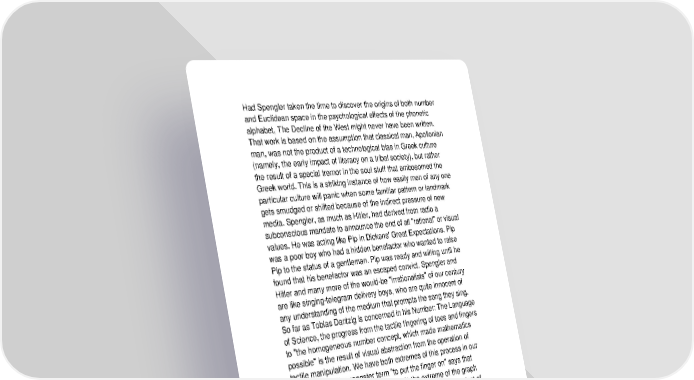 Had Spengler taken the time to discover the origins of both number and Euclidean space in the psychological effects of the phonetic alphabet, The Decline of the West might never have been written. That work is based on the assumption that classical man, Apollonian man, was not the product of a technological bias in Greek culture (namely, the early impact of literacy on a tribal society), but rather the result of a special tremor in the soul stuff that embosomed the Greek world. This is a striking instance of how easily men of any one particular culture will panic when some familiar pattern or landmark gets smudged or shifted because of the indirect pressure of new media. Spengler, as much as Hitler, had derived from radio a subconscious mandate to announce the end of all "rational" or visual values. He was acting like Pip in Dickens' Great Expectations. Pip was a poor boy who had a hidden benefactor who wanted to raise Pip to the status of a gentleman. Pip was ready and willing until he found that his benefactor was an escaped convict. Spengler and Hitler and many more of the would-be "irrationalists" of our century are like singing-telegram delivery boys, who are quite innocent of any understanding of the medium that prompts the song they sing. So far as Tobias Dantzig is concerned in his Number: The Language of Science, the progress from the tactile fingering of toes and fingers to "the homogeneous number concept, which made mathematics possible" is the result of visual abstraction from the operation of tactile manipulation. We have both extremes of this process in our daily speech. The gangster term "to put the finger on" says that somebody's "number" has come up. At the extreme of the graph profiles of the statisticians there is the frankly expressed object of manipulation of population for varieties of power purposes. For example, in any large stockbroker's office there is a modern medicine man known as "Mr. Odd Lots." His magical function is to study the daily purchases and sales of the small buyers on the big exchanges. Long experience