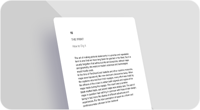 16 THE PRINT How to Dig it The art of making pictorial statements in a precise and repeatable form is one that we have long taken for granted in the West. But it is usually forgotten that without prints and blueprints, without maps and geometry, the world of modern sciences and technologies would hardly exist. In the time of Ferdinand and Isabella and other maritime monarchs, maps were top-secret, like new electronic discoveries today. When the captains returned from their voyages, every effort was made by the officers of the crown to obtain both originals and copies of the maps made during the voyage. The result was a lucrative black-market trade, and secret maps were widely sold. The sort of maps in question had nothing in common with those of later design, being in fact more like diaries of different adventures and experiences. For the later perception of space as uniform and continuous was unknown to the medieval
