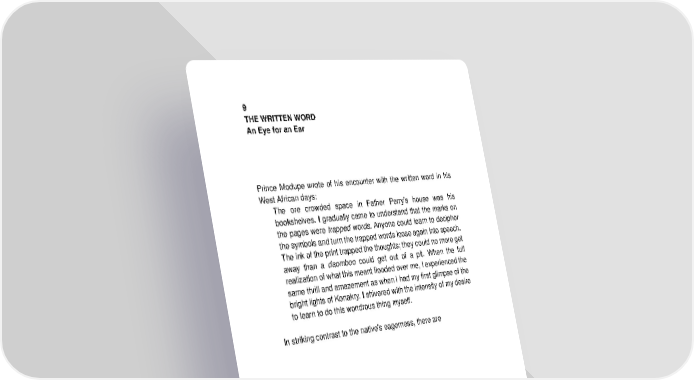 9 THE WRITTEN WORD An Eye for an Ear Prince Modupe wrote of his encounter with the written word in his West African days: The ore crowded space in Father Perry's house was his bookshelves. I gradually came to understand that the marks on the pages were trapped words. Anyone could learn to decipher the symbols and turn the trapped words loose again into speech. The ink of the print trapped the thoughts; they could no rnore get away than a daomboo could get out of a pit. When the full realization of what this meant flooded over me, I experienced the same thrill and amazement as when I had my first glimpse of the bright lights of Konakry. I shivered with the intensity of my desire to learn to do this wondrous thing myself. In striking contrast to the native's eagerness, there are