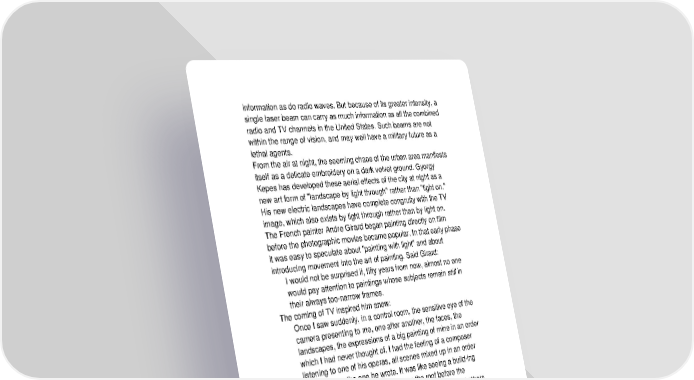 information as do radio waves. But because of its greater intensity, a single laser beam can carry as much information as all the combined radio and TV channels in the United States. Such beams are not within the range of vision, and may well have a military future as a lethal agents. From the air at night, the seeming chaos of the urban area manifests itself as a delicate embroidery on a dark velvet ground. Gyorgy Kepes has developed these aerial effects of the city at night as a new art form of "landscape by light through" rather than "light on." His new electric landscapes have complete congruity with the TV image, which also exists by light through rather than by light on. The French painter Andre Girard began painting directly on film before the photographic movies became popular. In that early phase it was easy to speculate about "painting with light" and about introducing movement into the art of painting. Said Girard: I would not be surprised if, fifty years from now, almost no one would pay attention to paintings whose subjects remain still in their always too-narrow frames. The coming of TV inspired him anew: Once I saw suddenly, in a control room, the sensitive eye of the camera presenting to me, one after another, the faces, the landscapes, the expressions of a big painting of mine in an order which I had never thought of. I had the feeling of a composer listening to one of his operas, all scenes mixed up in an order different from the one he wrote. It was like seeing a build-ing from a fast elevator that showed you the roof before the basement, and made quick stops at some floors but not others. Since that phase, Girard has worked out new techniques of