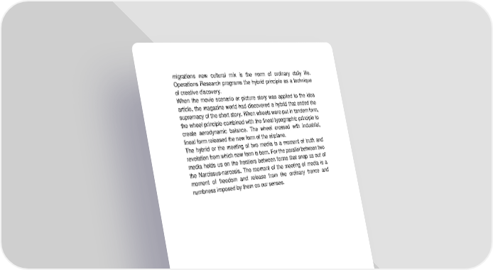 migrations new cultural mix is the norm of ordinary daily life. Operations Research programs the hybrid principle as a technique of creative discovery. When the movie scenario or picture story was applied to the idea article, the magazine world had discovered a hybrid that ended the supremacy of the short story. When wheels were put in tandem form, the wheel principle combined with the lineal typographic principle to create aerodynamic balance. The wheel crossed with industrial, lineal form released the new form of the airplane. The hybrid or the meeting of two media is a moment of truth and revelation from which new form is born. For the parallel between two media holds us on the frontiers between forms that snap us out of the Narcissus-narcosis. The moment of the meeting of media is a moment of freedom and release from the ordinary trance and numbness imposed by them on our senses.