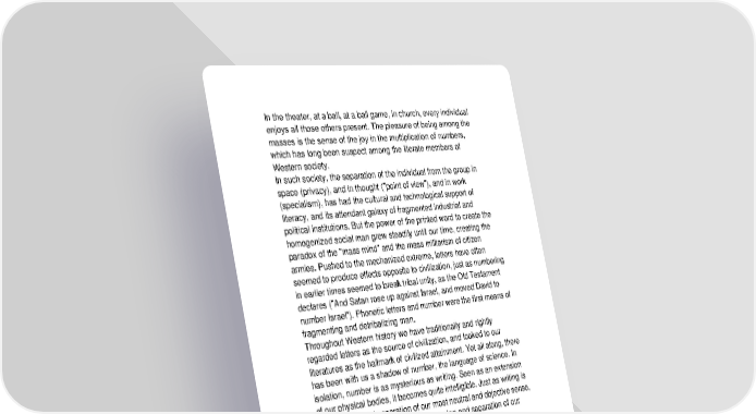 In the theater, at a ball, at a ball game, in church, every individual enjoys all those others present. The pleasure of being among the masses is the sense of the joy in the multiplication of numbers, which has long been suspect among the literate members of Western society. In such society, the separation of the individual from the group in space (privacy), and in thought ("point of view"), and in work (specialism), has had the cultural and technological support of literacy, and its attendant galaxy of fragmented industrial and political institutions. But the power of the printed word to create the homogenized social man grew steadily until our time, creating the paradox of the "mass mind" and the mass militarism of citizen armies. Pushed to the mechanized extreme, letters have often seemed to produce effects opposite to civilization, just as numbering in earlier times seemed to break tribal unity, as the Old Testament declares ("And Satan rose up against Israel, and moved David to number Israel"). Phonetic letters and number were the first means of fragmenting and detribalizing man. Throughout Western history we have traditionally and rightly regarded letters as the source of civilization, and looked to our literatures as the hallmark of civilized attainment. Yet all along, there has been with us a shadow of number, the language of science. In isolation, number is as mysterious as writing. Seen as an extension of our physical bodies, it becomes quite intelligible. Just as writing is an extension and separation of our most neutral and objective sense, the sense of sight, number is an extension and separation of our most intimate and interrelating activity, our sense of touch. This faculty of touch, called the "haptic" sense by the Greeks, was popularized as such by the Bauhaus program of sensuous education, through the work of Paul Klee, Walter Gropius, and many others in the Germany of the 1920s. The sense of touch, as offering a kind of nervous system or organic unity in the work