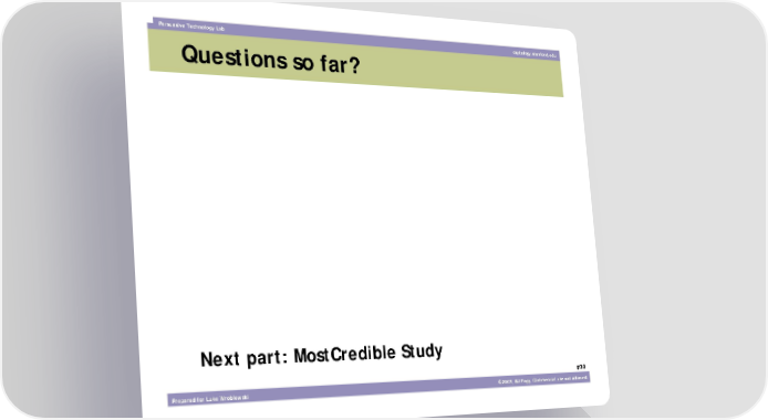 Persuasive Technology Lab captology.stanford.edu Questions so far? Next part: MostCredible Study #38 Prepared for Luke Wroblewski ©2003, BJ Fogg. Commercial use not allowed.