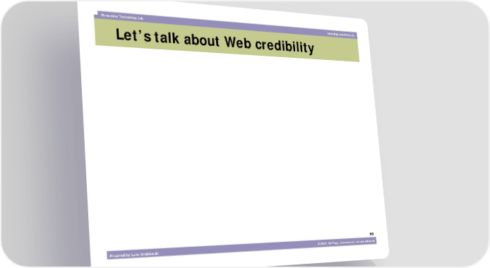 What Makes a Website Credible? Page 7 Page 9Persuasive Technology Lab captology.stanford.edu Let’s talk about Web credibility #8 Prepared for Luke Wroblewski ©2003, BJ Fogg. Commercial use not allowed.
