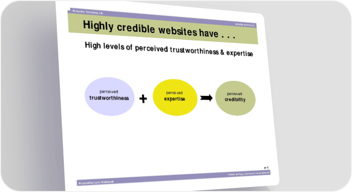 Persuasive Technology Lab captology.stanford.edu Highly credible websites have . . . High levels of perceived trustworthiness & expertise perceived perceived perceived trustworthiness + expertise credibility #13 Prepared for Luke Wroblewski ©2003, BJ Fogg. Commercial use not allowed.