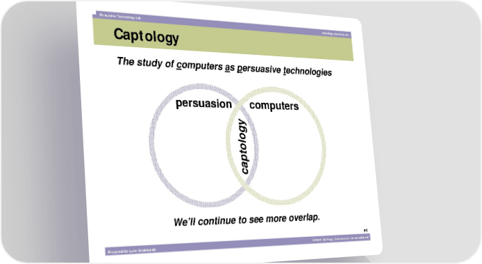 Persuasive Technology Lab captology.stanford.edu Captology The study of computers as persuasive technologies persuasion computers captology We’ll continue to see more overlap. #5 Prepared for Luke Wroblewski ©2003, BJ Fogg. Commercial use not allowed.