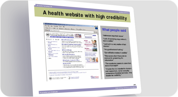 Persuasive Technology Lab captology.stanford.edu A health website with high credibility What people said “Addresses important issues” “Lack of marketing copy makes it more credible” “Laid out in a very matter-of-fact manner” “Very professional looking” “Gov affiliation makes it credible” “Site owners don’t have ulterior motives for presenting the information” “The vocabulary seems to come from more of an expert” “It looks like it’s intended for doctors and researchers, not for everyday consumers of medical services -- this boosts its credibility.” #44 Prepared for Luke Wroblewski ©2003, BJ Fogg. Commercial use not allowed.