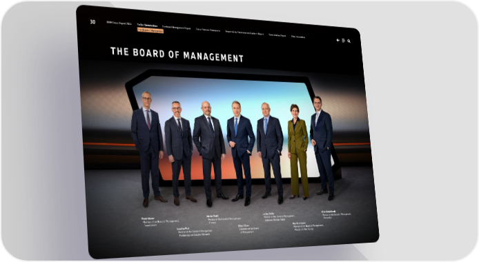 T H E BOA R D OF MANAGE ME NT Ilka Horstmeier Member of the Board of Management, People and Real Estate Milan Nedeljković Member of the Board of Management, Production Walter Mertl Member of the Board of Management, Finance Oliver Zipse Chairman of the Board of Management Jochen Goller Member of the Board of Management, Customer, Brands, Sales Frank Weber Member of the Board of Management, Development Joachim Post Member of the Board of Management, Purchasing and Supplier Network 30 BMW Group Report 2024 To Our Stakeholders Combined Management Report Group Financial Statements Responsibility Statement and Auditor’s Report Remuneration Report Other Information The Board of Management