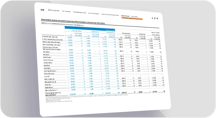 410 BMW Group Report 2024 To Our Stakeholders Combined Management Report Group Financial Statements Responsibility Statement and Auditor’s Report Remuneration Report Other Information III. Remuneration of the Members of the Supervisory Board Remuneration granted and owed to Supervisory Board members in financial year 2024 (2023) MEMBERS OF THE SUPERVISORY BOARD IN OFFICE AS AT 31 DECEMBER 2024 Financial year 2024 Financial year 2023 Fixed remuneration Attendance fee Total remuneration Fixed remuneration Attendance fee Total remuneration in € as a % of total remuneration in € as a % of total remuneration in € as a % of total remuneration in € as a % of total remuneration in € as a % of total remuneration in € as a % of total remuneration Norbert Reithofer (Chairman) 600,000 98 10,000 2 610,000 100 600,000 98 10,000 2 610,000 100 Dr. Martin Kimmich (Deputy Chairman)1 400,000 98 10,000 2 410,000 100 379,545 97 10,000 3 389,545 100 Stefan Quandt (Deputy Chairman) 400,000 98 10,000 2 410,000 100 400,000 98 10,000 2 410,000 100 Stefan Schmid (Deputy Chairman)1 400,000 98 10,000 2 410,000 100 400,000 98 10,000 2 410,000 100 Kurt Bock (Deputy Chairman, Chairman of the Audit Committee) 450,000 98 10,000 2 460,000 100 450,000 98 10,000 2 460,000 100 Ulrich Bauer2 126,087 94 8,000 6 134,087 100 – – – – – – Marc Bitzer 200,000 95 10,000 5 210,000 100 200,000 95 10,000 5 210,000 100 Rachel Empey3 400,000 98 10,000 2 410,000 100 400,000 98 10,000 2 410,000 100 Heinrich Hiesinger 200,000 95 10,000 5 210,000 100 200,000 95 10,000 5 210,000 100 Susanne Klatten 200,000 95 10,000 5 210,000 100 200,000 96 8,000 4 208,000 100 Jens Köhler1 200,000 95 10,000 5 210,000 100 200,000 95 10,000 5 210,000 100 André Mandl1 200,000 96 8,000 4 208,000 100 200,000 95 10,000 5 210,000 100 Dominique Mohabeer1,3 400,000 98 10,000 2 410,000 100 400,000 98 10,000 2 410,000 100 Michael Nikolaides4 33,333 94 2,000 6 35,333 100 – – – – – – Horst Ott1,2 126,087 95 6,000 5 132,087 100 – – – – – – Anke Schäferkordt 200,000 95 10,000 5 210,000 100 200,000 95 10,000 5 210,000 100 Christoph M. Schmidt 200,000 95 10,000 5 210,000 100 200,000 95 10,000 5 210,000 100 Vishal Sikka 200,000 96 8,000 4 208,000 100 200,000 95 10,000 5 210,000 100 Sibylle Wankel1 200,000 95 10,000 5 210,000 100 200,000 95 10,000 5 210,000 100 Johanna Wenckebach1,2 126,087 94 8,000 6 134,087 100 – – – – – – Total acting members of the Supervisory Board 5,261,594 97 180,000 3 5,441,594 100 4,829,545 97 158,000 3 4,987,545 100 1 These employee representatives have declared that they will transfer their remuneration to the Hans Böckler Foundation in accordance with the guidelines of the Confederation of German Trade Unions. 2 Member of the Supervisory Board since 15 May 2024. 3 Member of the Audit Committee. 4 Member of the Supervisory Board since 1 November 2024.